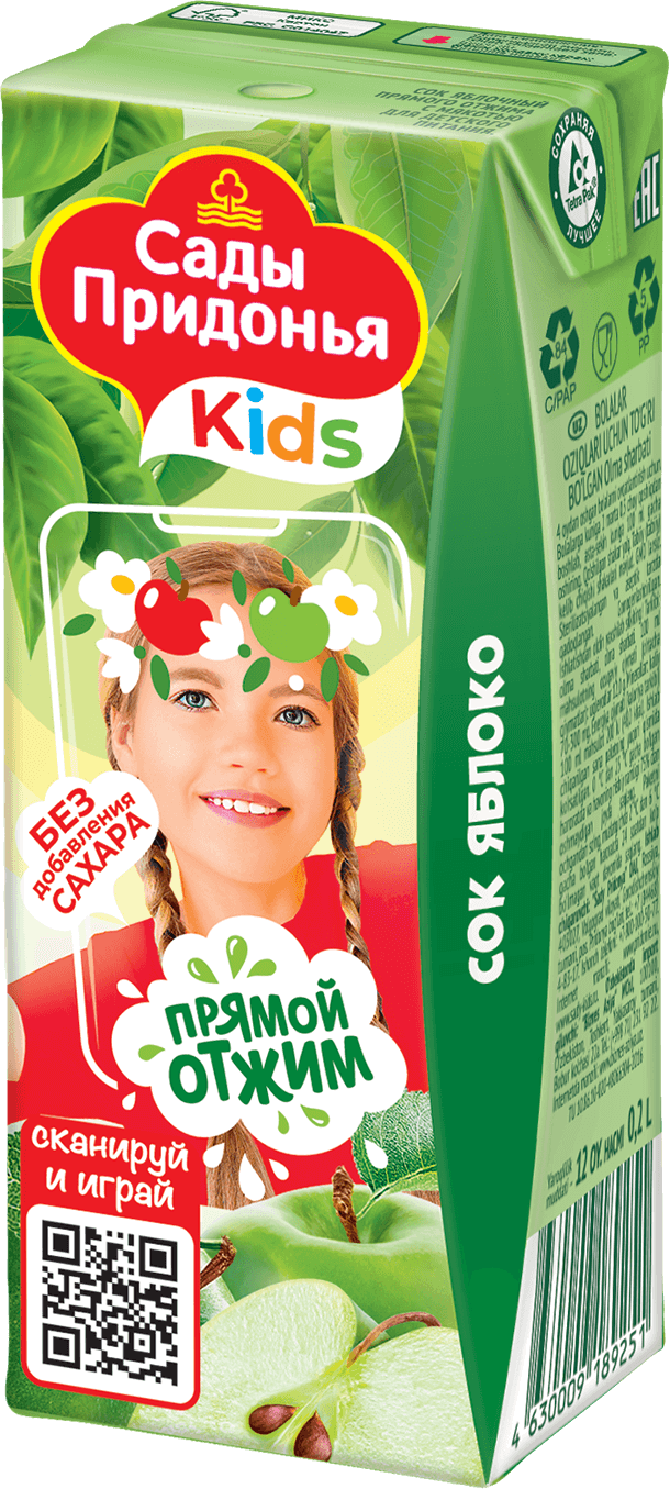Произведен из концентрированного яблочного сока из зеленых яблок сортов: «Курский Золотой», «Синап Северный», «Синап Орловский», «Избранница» плодового хозяйства «Сады Придонья».